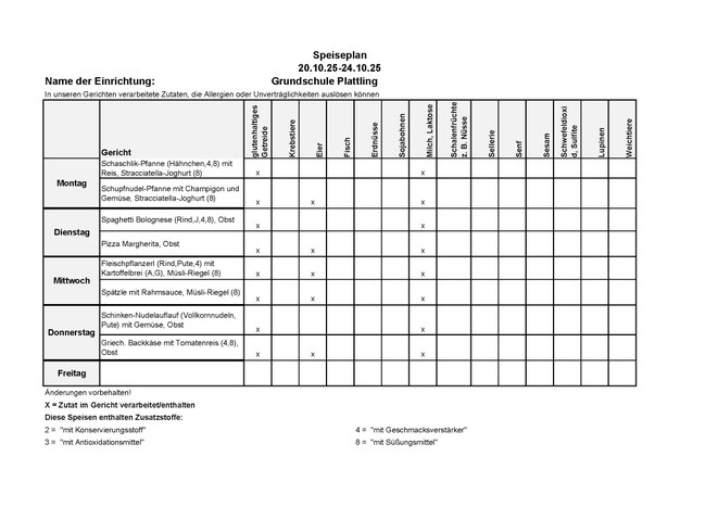 Hier die neuen Speisepläne bis zum 31.10.2025. Guten Appetit.